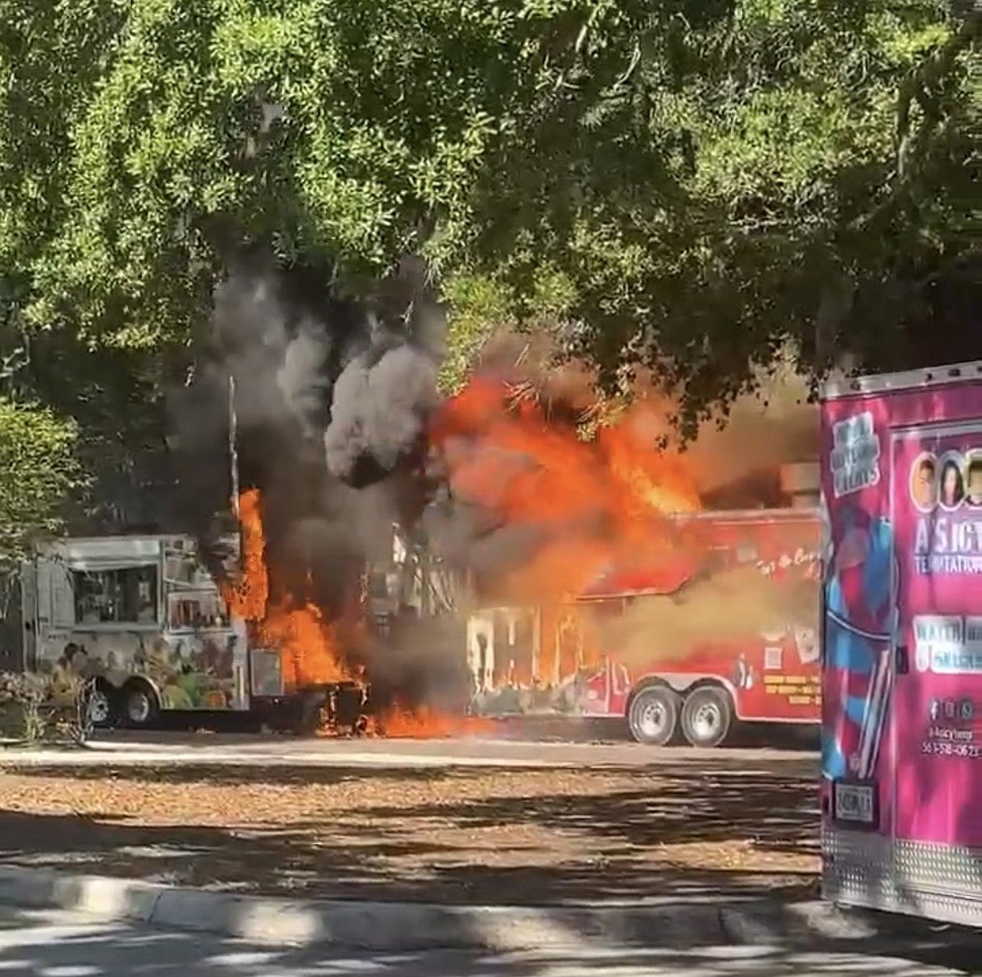 Two food trucks, Grandma’s BBQ and Smoothie Express, caught on fire prior to Food Truck Night taking place.