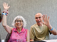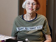 Linda Lieberman was all smiles while volunteering to run bingo. She is with the Southwest Jewish Seniors.