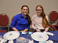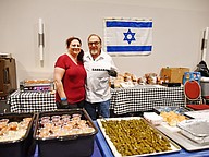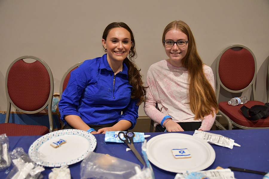 Tova Yachnes and Leora Gunzburg helped children decorate graham crackers to look like Israel's flag.