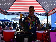 Earl’s No Mumbo Jumbo Chili is taking a stand against childhood cancer after his nephew beat childhood cancer. He rings the bell to beat cancer.