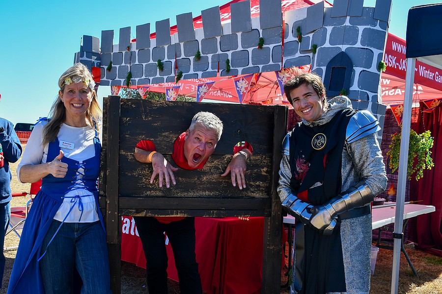 State Farm’s Shannon Till, left, and her coworkers came ready to protect everyone’s castle.