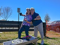 Marlene Hengst and Jennifer Dwyre shared laughs as they enjoyed a friendly game of cornhole.