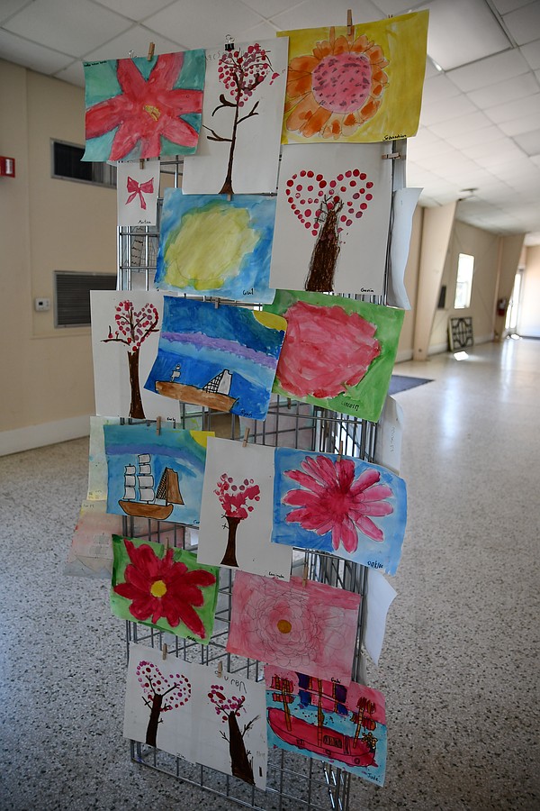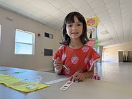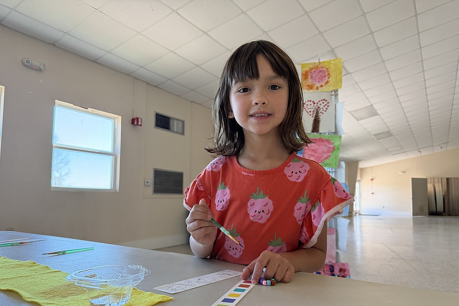 Kindergartner Mia Turner took her time painting a bookmark after she made a bracelet.