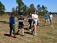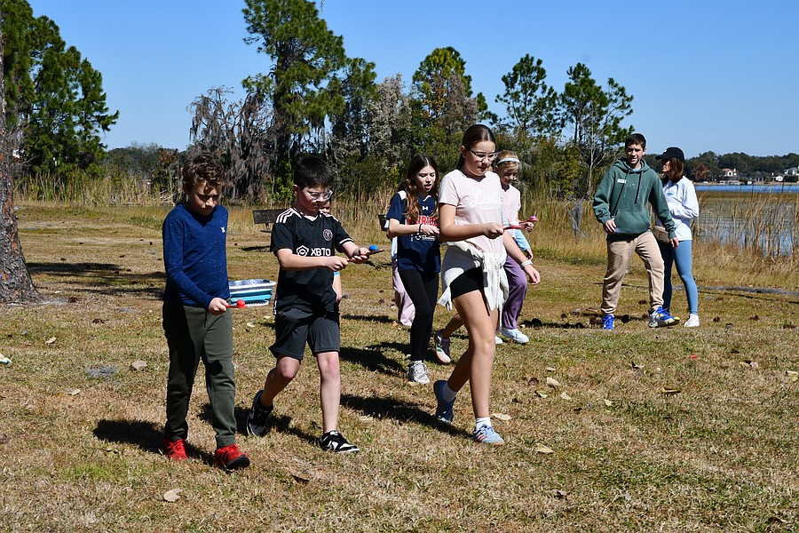 Students walked as swiftly as they can while balancing an egg on a spoon.