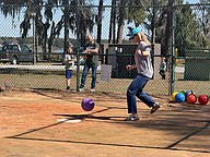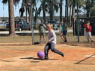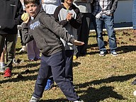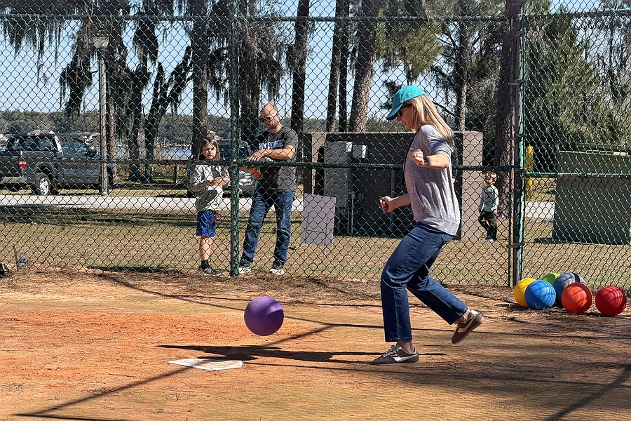 Jamie Johnson was one of dozens of parents to participate in the parents versus kindergartners and first-graders kickball game.