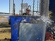 Vanessa Kunkel made a splash as she was dunked into the tank.
