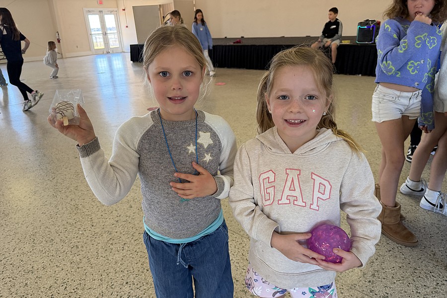 Lucy Steffes and Palmer Trien will be kindergartners next year. Steffes showed off the cake pop she won in the cake walk.