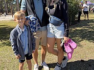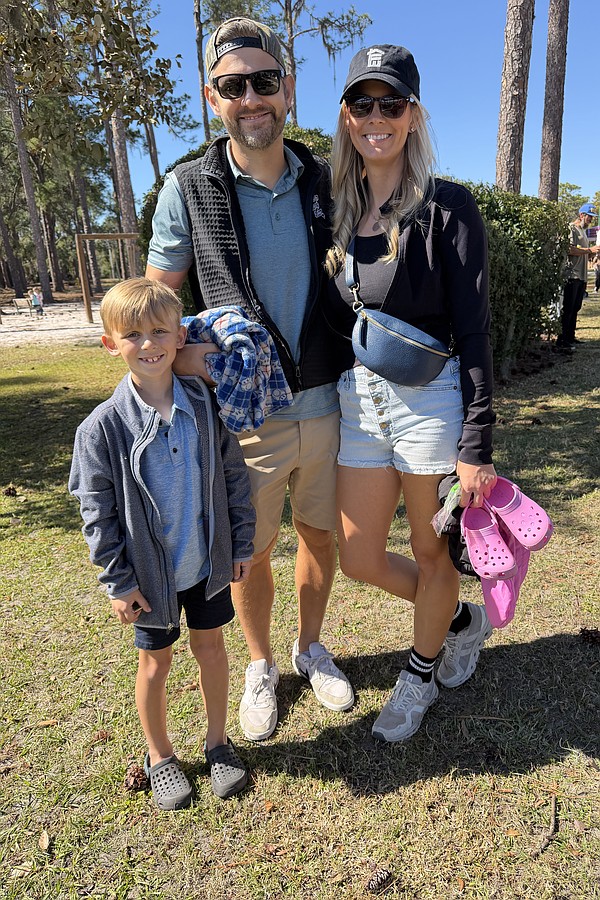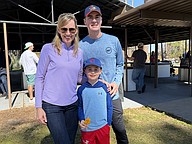 Lynn Morris, first-grader Ryan Morris and Mike Morris enjoyed a popsicle after playing in the kindergartners and first-graders versus parents kickball game.