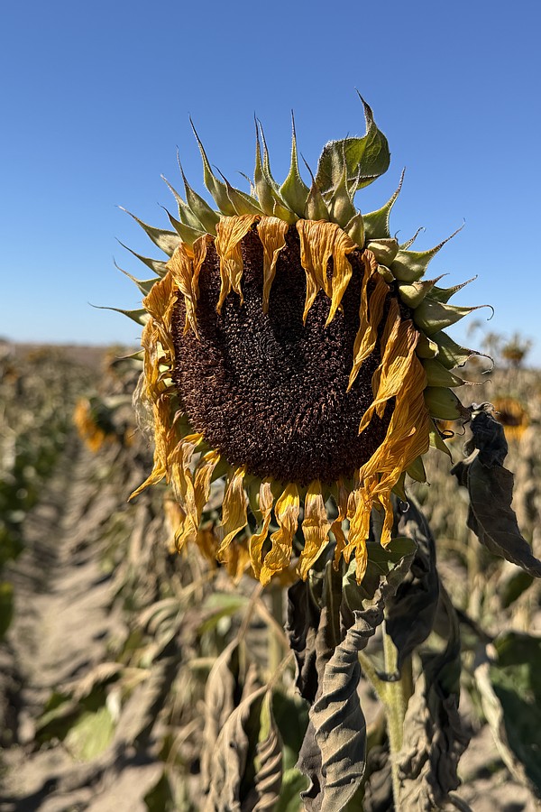 The water lines in the sunflower fields had to be turned off because the sprinkler heads froze.