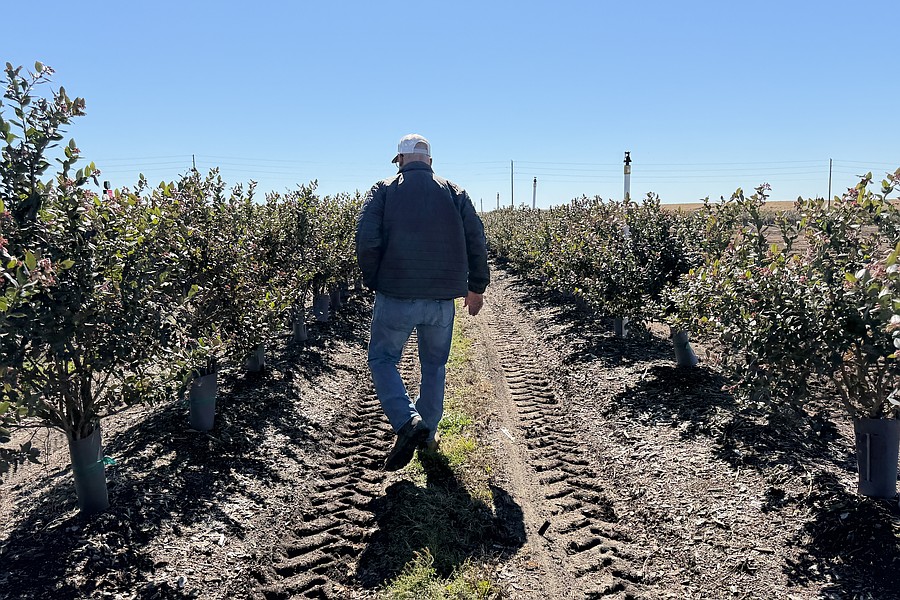 Southern Hill Farms owner David Hill walked through the blueberry fields checking on how they were doing after the cold temperatures.
