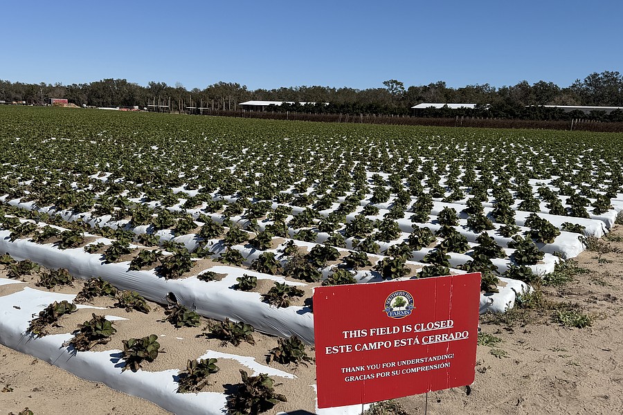 Strawberry fields were closed for picking to maintain the surviving strawberries after the cold temperatures.