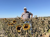 Fields of sunflowers were destroyed and another field was left with sunflowers standing but shriveled.