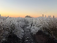 Hill said the combination of frigid temperatures and high winds made it impossible to have enough water to properly cover the plants. The winds also made it so the ice wasn’t the right type of ice for freeze protection. He said a clear coating that acts as a sheet of ice on the leaves, berries and flowers is optimal, but the weather turned the water into a mist causing the ice to be milky and not cover the plants properly.