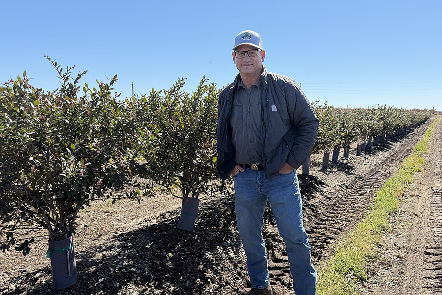 Southern Hill Farms owner David Hill said the white on the blueberry bushes means there is a chance for good blueberries.
