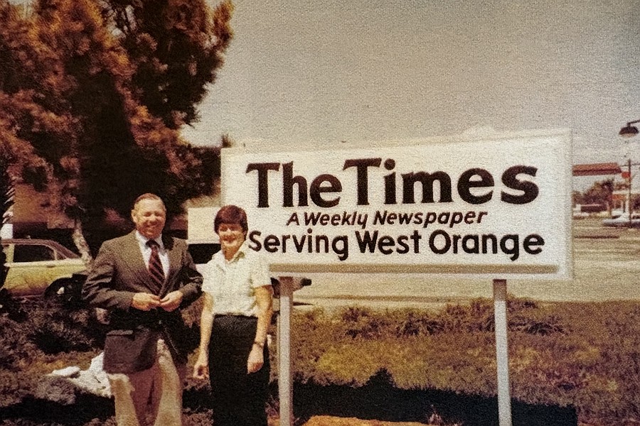 George and Anne Bailey were photographed in front of their new newspaper sign on South Dillard Street in Winter Garden. They owned The West Orange Times for 44 years.