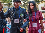 King Zachary Transfiguracion wore a beautifully decorated suit. He waved down the red carpet with his buddy Sera Lamm.
