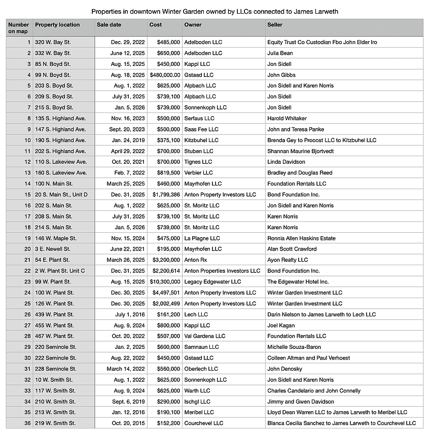 Today, Winter Garden residents are concerned about a new change: One individual has spent more than $40 million since 2015 to buy 36 residential and commercial properties — all in downtown Winter Garden. The purchases were made using 26 different LLCs.