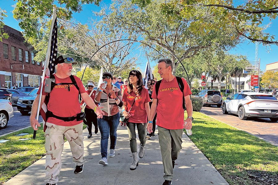 Kurt Gies, founder of Challenge 22, left, led the ninth annual ruck walk to support veterans.