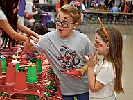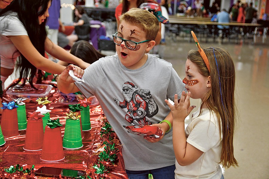 Hayden and Hailey Holmes were excited to see what prize they won at a game at Horizon High School’s first Frost Fest.