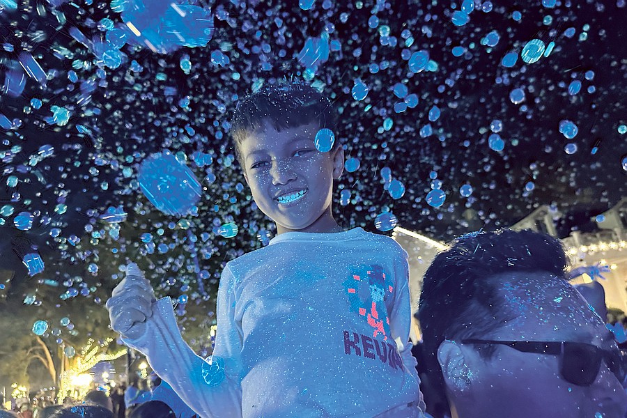 Hunter Hyun loved playing in the glow-in-the-dark bubbles with his dad at Light Up Windermere.