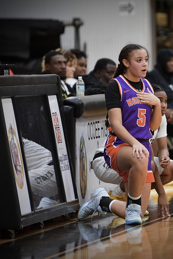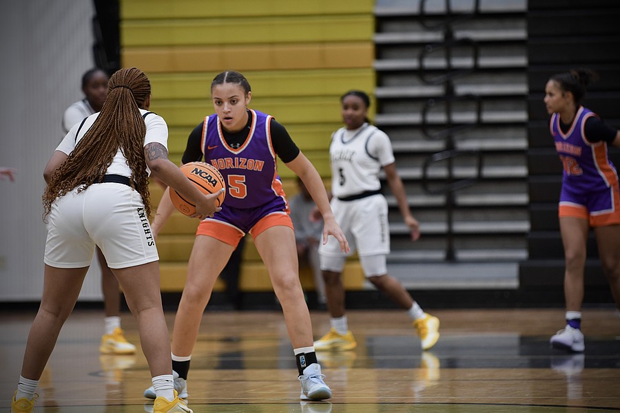 Ocoee senior Aniya Hester dribbled the ball to Horizon’s defense. She was an important part of the Knights ball moment during the game.