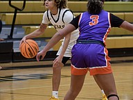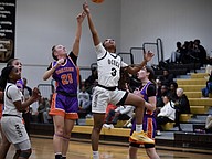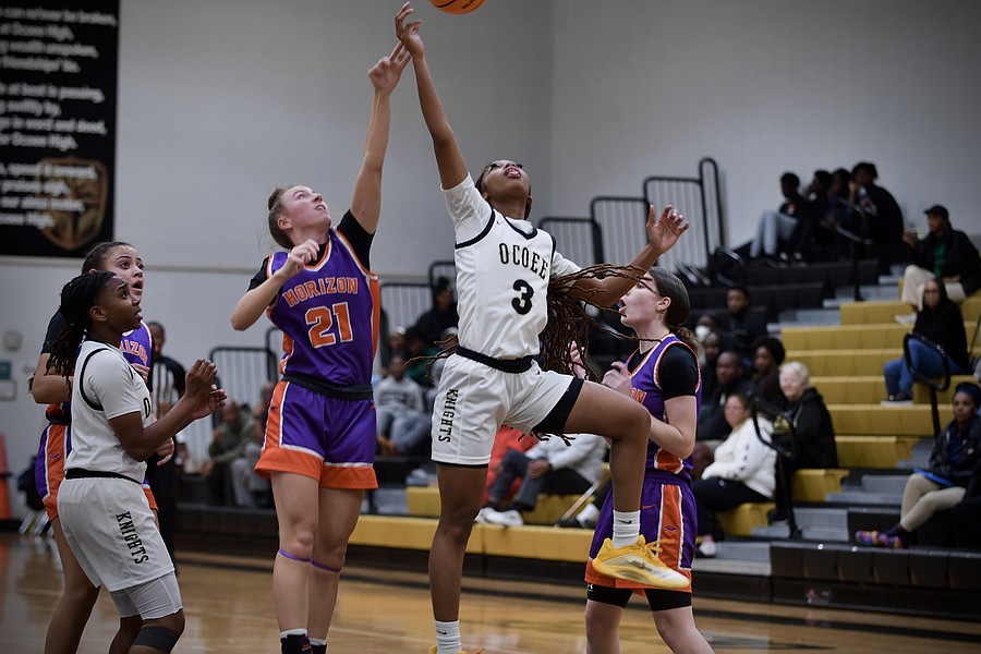 Zoe Corjay, Horizon, and Dakara Merthie, Ocoee, fought under the rim as Merthie attempted a shot.