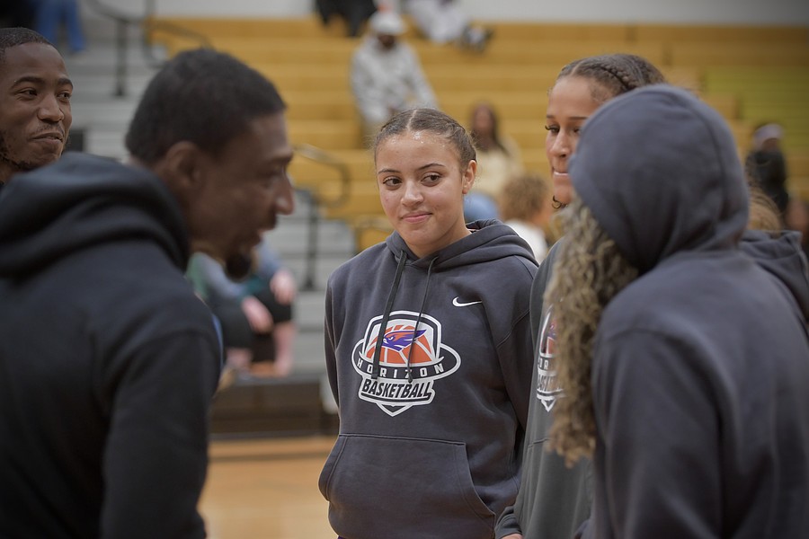 Ocoee’s Gabriella Fortius and Horizon’s Bailey Travis battled it out for the tipoff. Horizon won the contest.