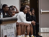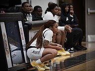 Horizon sat on the bench and encouraged the ladies on the floor.