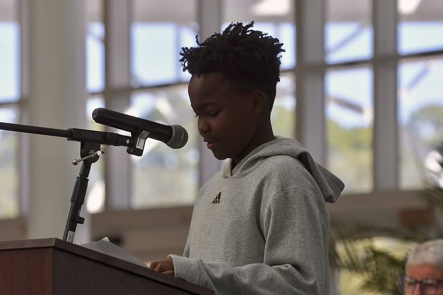 Joshua Metellus read his award-winning essay, “A Bright Future for Ocoee and America,” to the crowd after the parade.