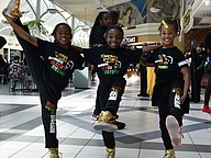 Standing Ovation Talent Group wore custom sweats reading, “Black history, the dream.”