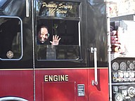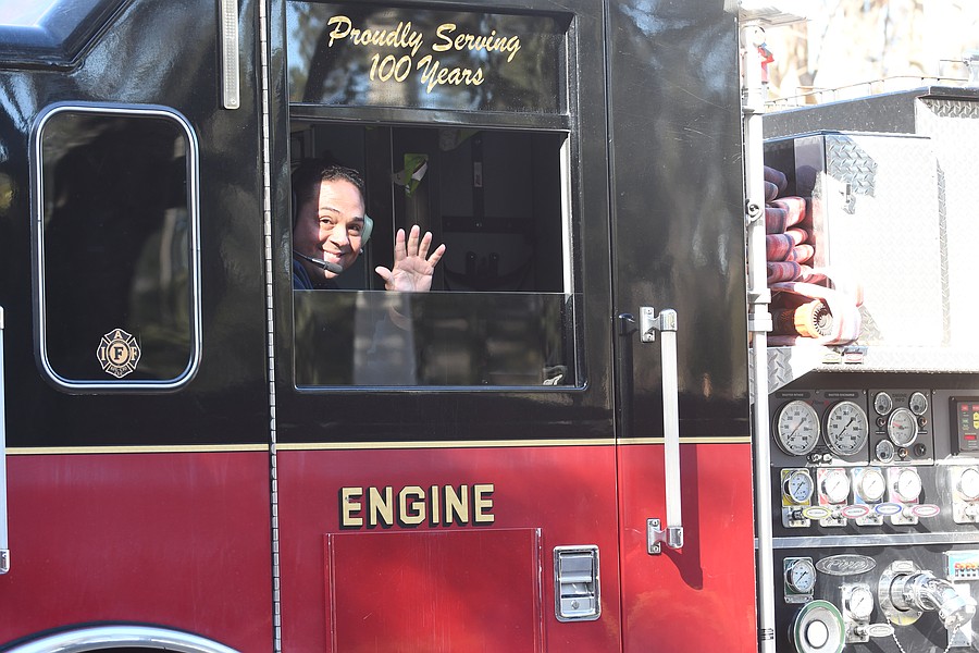 An Ocoee firefighter was all smiles as he peered out of the firetruck.
