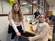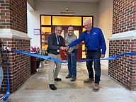 Dozens of Lakeview Middle School students, faculty and parents crowded outside the doors of the media center and watched as Principal John Linehan and Wharton-Smith's George Novo and Dean Schiffbauer cut the ribbon to celebrate the opening of the newly renovated media center Thursday, Jan. 29.