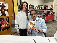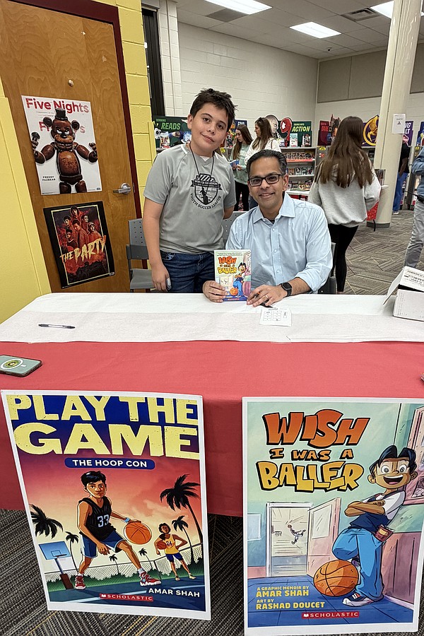 Lakeview Middle School’s Gabriel Holloway had his copy of “Wish I was a Baller” signed by author Amar Shah.