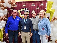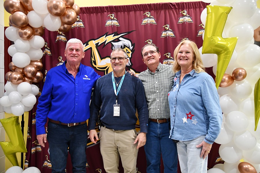 Wharton-Smith’s Dean Schiffbauer, Lakeview Middle Principal John Linehan, Wharton-Smith’s George Novo and Lakeview Middle School media specialist Patricia Rawlings were eager to celebrate the ribbon cutting of the newly renovated media center.