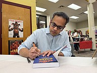 Local author Amar Shah signed books after giving a presentation on lessons he’s learned in his career as a journalist and author.