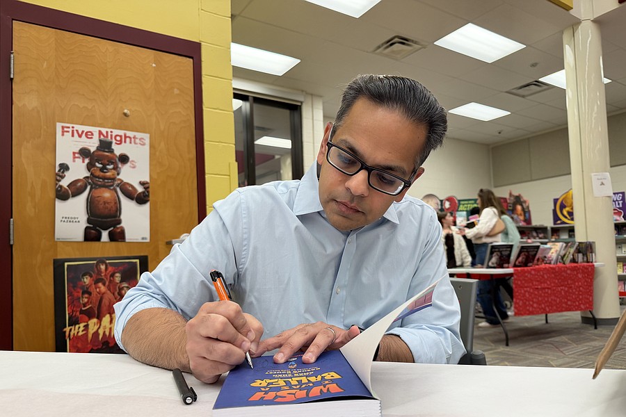 Afterward, Shah signed copies of "Wish I was a Baller" for students as others went around the media center to participate in literacy activities.
