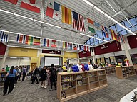 The media center now has an alternate room that can be used as a classroom while other lessons are occurring in the main library. There also is a work room and four bathrooms.
