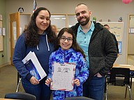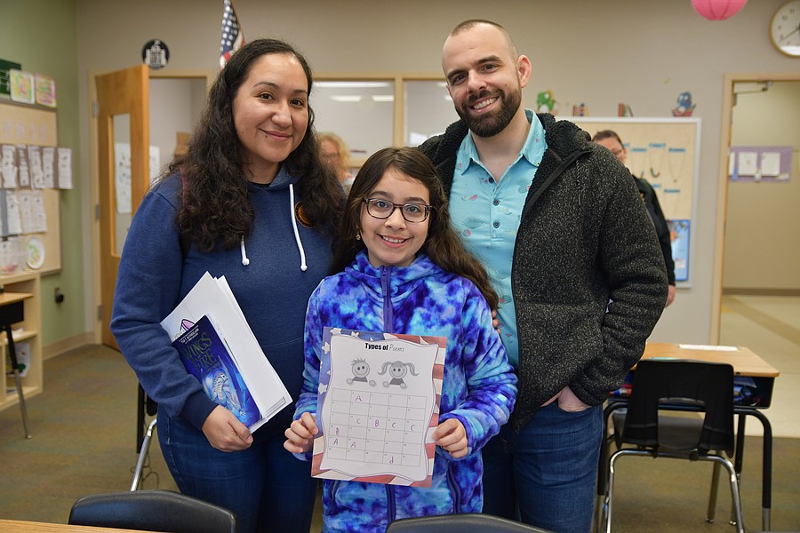 Marisela, Sophia and Erich Keller enjoyed solving poems to earn a prize.