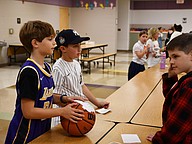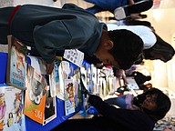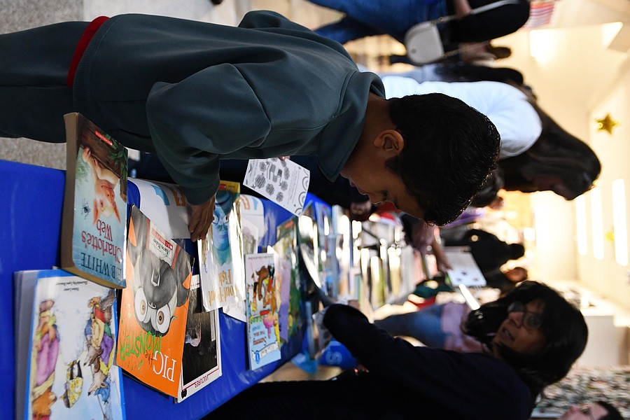 First grader Lucas Castro picked out his new favorite book at the book exchange table.