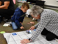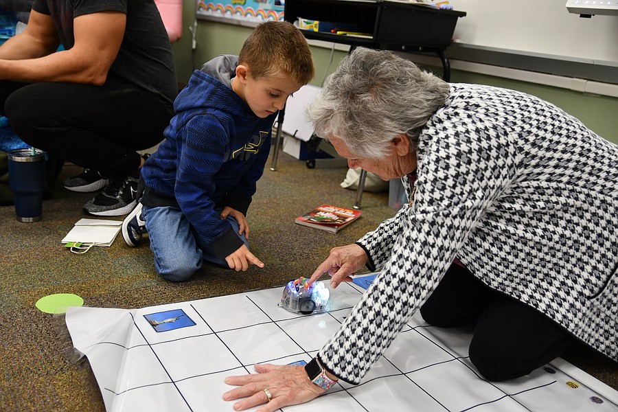 Connor and Gammy Barnsky played with a robot by pressing buttons to move it through the map.