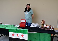 Whispering Oak Elementary’s art teacher Vivian Alfonso stood proudly in front of her students’ U.S. flag artwork.