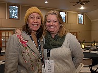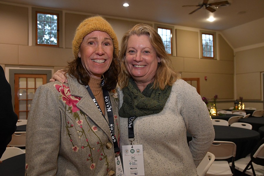 CT Allen and Pam Martini helped funnel guests through Windermere Town Hall to receive their wine glasses and wooden trays.
