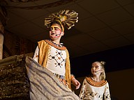 Sophia Branco, who played Rafiki, and Max Meibuhr, who played Mufasa, stood with tall on pride rock before presenting baby Simba.