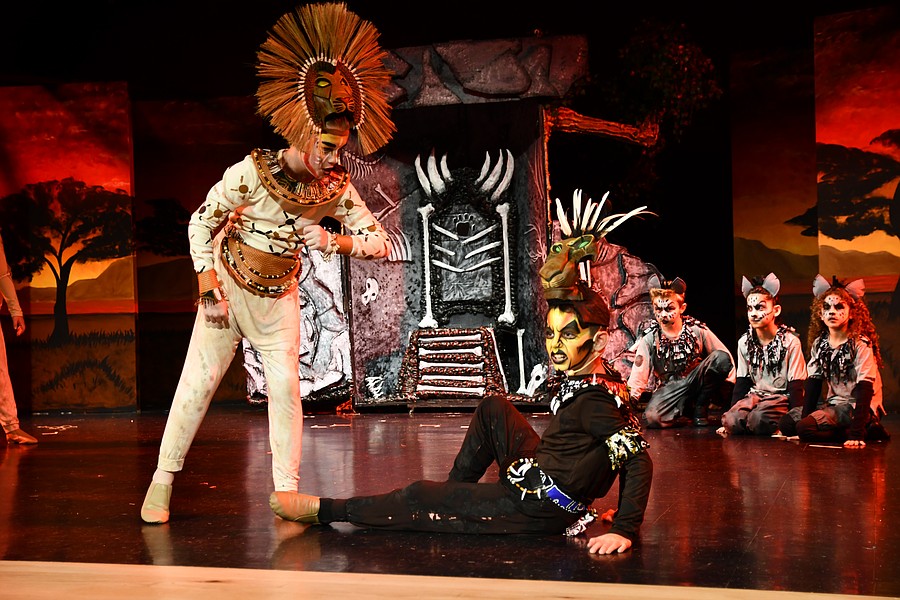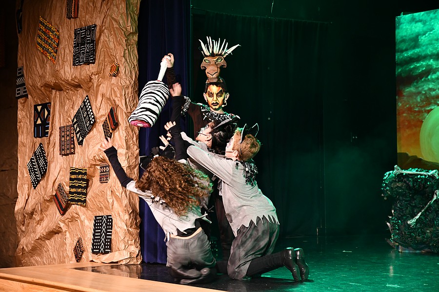 Mirroring the classic scene from the movie, Scar, played by Ryker Jimenez Altavilla, killed Mufasa, played by Max Meibuhr.