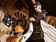 Volunteer Erica Altavilla painted Amelia Dugin's face to make her character Timon come to life.