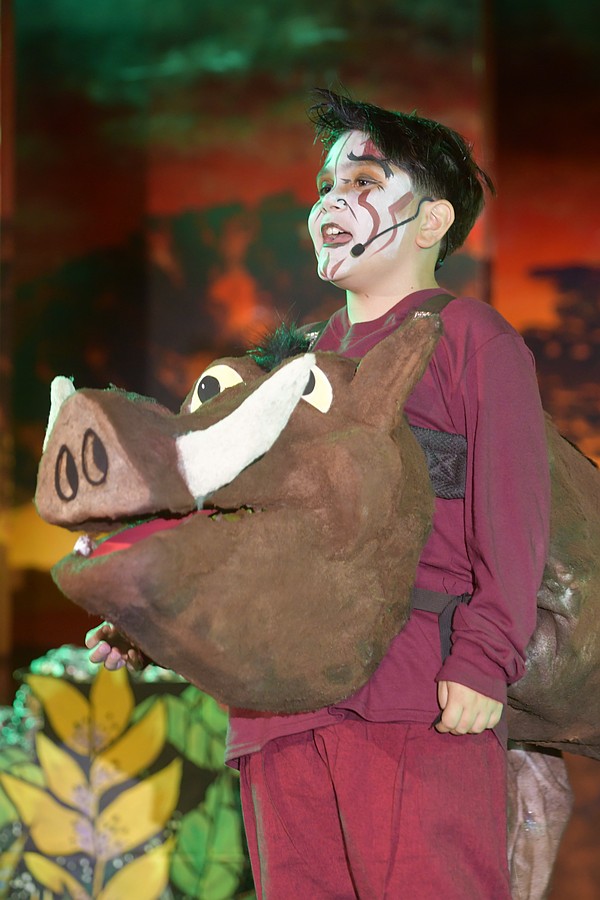 Gustavo Ferroni played Pumbaa while Chase Jordan took on two roles, first as a snake and later as adult Simba.