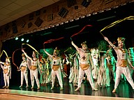 The cafeteria was packed for the performance that included vibrant costumes, stage lights fitting every mood of each scene, beautifully painted sets and more.