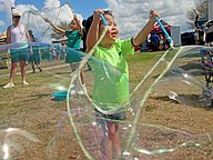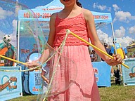 Emily Romero, 9, worked hard to make some giant bubbles.