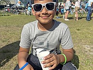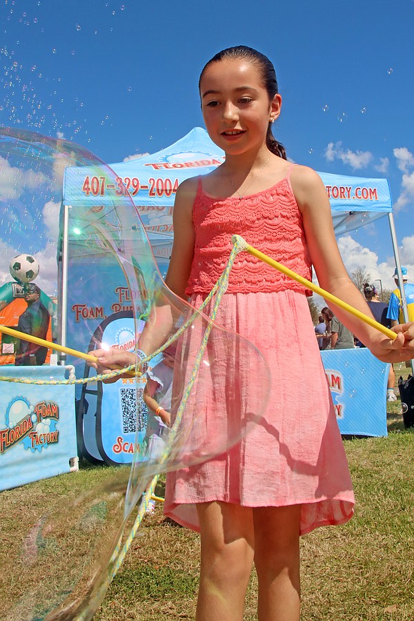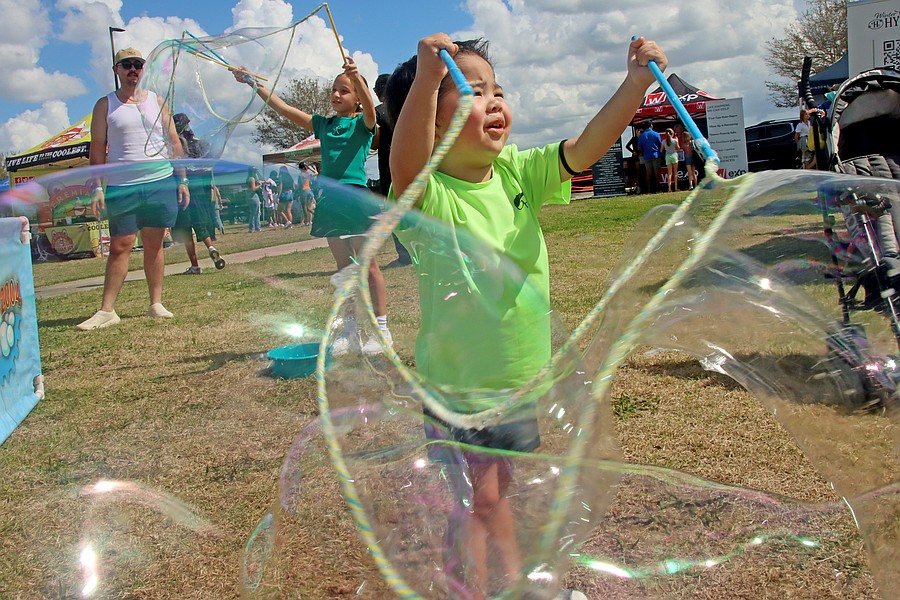 Noah Hilado, 3, absolutely loved playing with the bubbles at Florida Foam Factory’s booth.