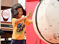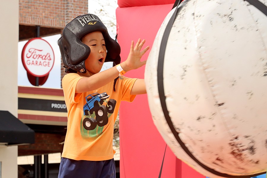 Braylon Joo, 6, was a fierce competitor at the Wrecking Ball game.